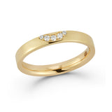 Sleek and significant gold band with diamonds set along the tip of the ring in a semi-circle shape. This is a great modern classic wedding band with a comfort fit perfect for everyday wear.