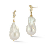 These Left and Right large Baroque pearl drop earrings with Salt and Pepper diamond studs complement each other between the warm tones from the diamonds and the lustrous white pearls. An effortless way to make a statement for any occasion in the most elegant and sophisticated manner.