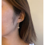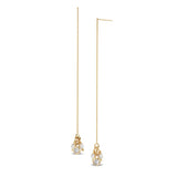 These minimal style chain threader earrings with a cluster of small pearls and diamond charms are pretty adorable and feminine with plenty of charm packed into these dainty earrings.