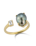 Tahitian Pearl and a Diamond Baguette comes together perfectly for another variation of our beloved U-shape ring silhouette, also known by many in the jewelry world as "Toi et Moi" or "2-stone" ring. In French, "Toi et Moi" means "You and Me" and is referred to two different gemstones set closely together.