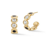 These black enameled hoops are mixed with diamonds for a sophisticated look.