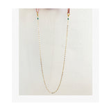 This 30" long brass chain with plated gold have genuine semi-precious Turquoise rondelle shape stone beads linked onto the chain at both ends for a subtle pop of color appropriate for brightening up your day while you wear your glasses.