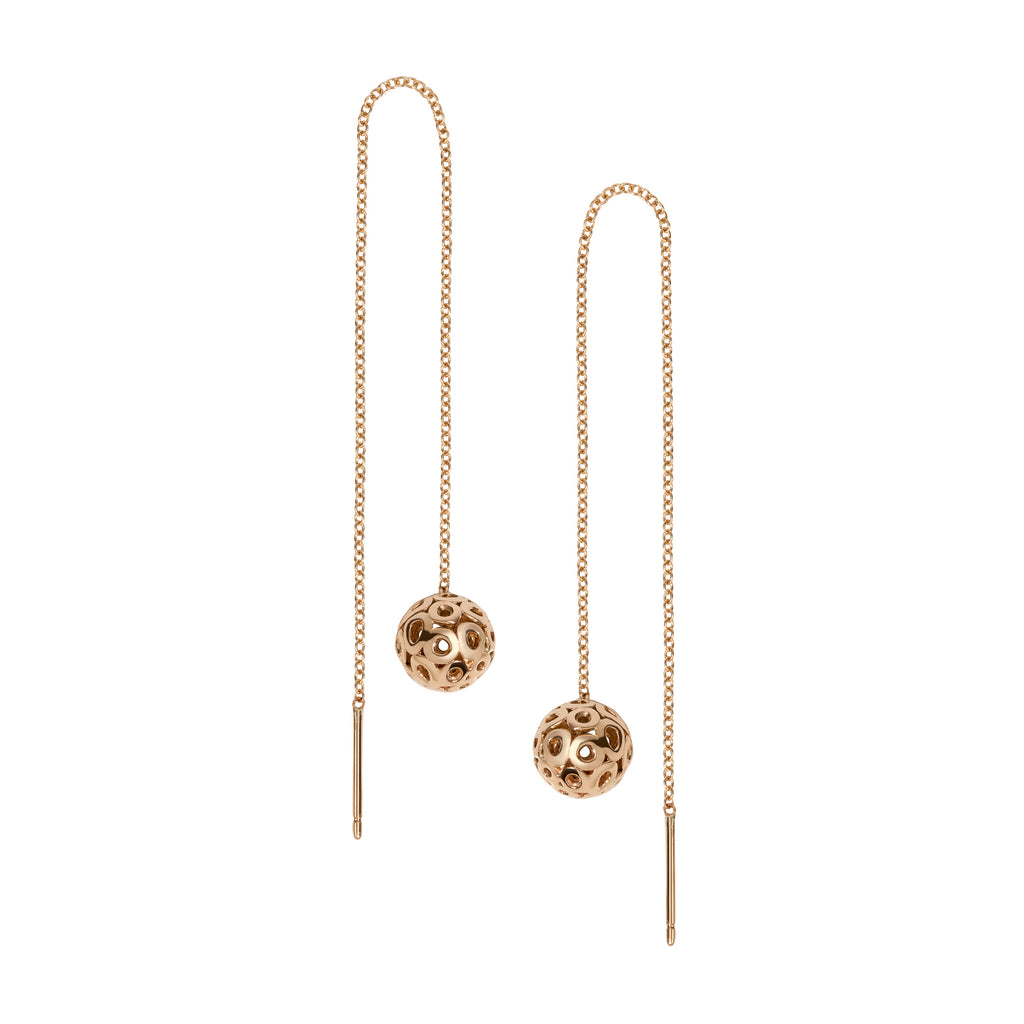 • 14k gold threader earrings, solid gold ball threader earrings with open work