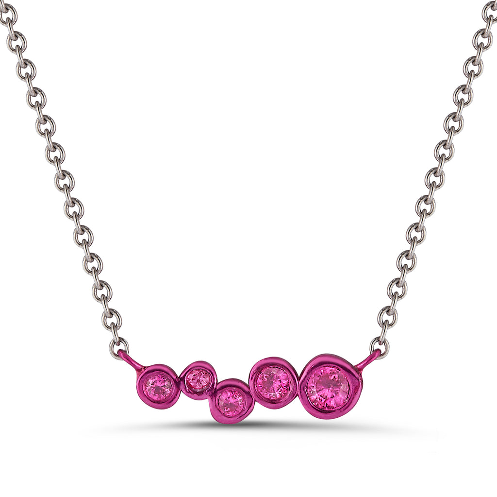 Our version of the classic bar pendant sprinkled with tapering sizes of Ruby stones