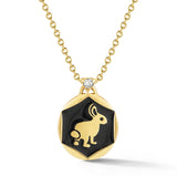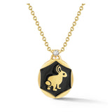 This black enamel pendant with a diamond on its bale is for animal lovers as well as those inspired by Alice in Wonderland. Rabbits are known to symbolize abundance and good fortune. They have extremely sensitive organs and are highly intuitive due to their survival nature making them imaginative and creative.