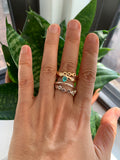 14k yellow Gold 1 Carat Oval Round Emerald Stacking Ring Set