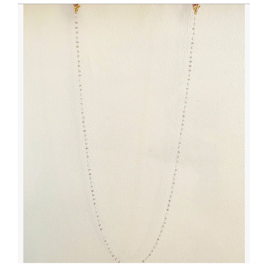 This 30" hand-made sterling silver rosary chain is made with Genuine faceted Rondelle Champagne Zircon shape stones. It is a beautiful neutral warm color with a subtle sparkle which compliments any layering with your existing necklaces.