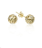 Yellow gold perfectly round ball stud with texture and sprinkled diamonds.