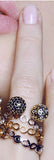Organic circles with white diamonds and pavé ball with black diamonds.