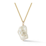 Statement long Baroque Pearl pendant inlaid with diamonds on heavy cable chain, perfect for layering with your favorite chains, pearls and necklaces.