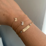 Versatile and sweet adjustable chain bracelet with the Trickster Bunny. This bracelet is adjustable and can fit wrists up to 7.5". The "bolo" mechanism slides the chain to be worn shorter or longer.