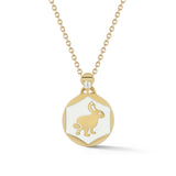 This white enamel pendant with a diamond on its bale is for animal lovers as well as those inspired by Alice in Wonderland. Rabbits are known to symbolize abundance and good fortune. They have extremely sensitive organs and are highly intuitive due to their survival nature making them imaginative and creative.